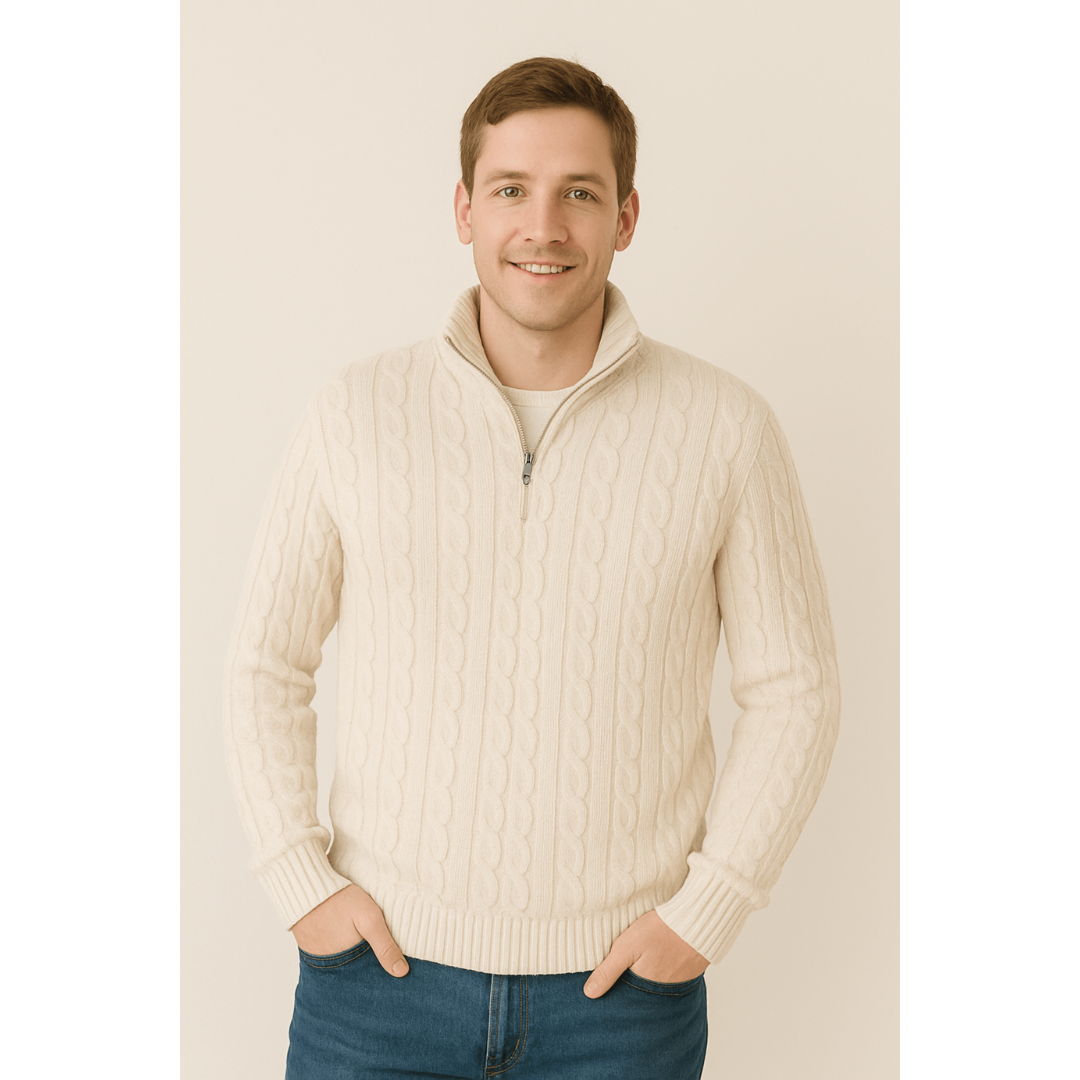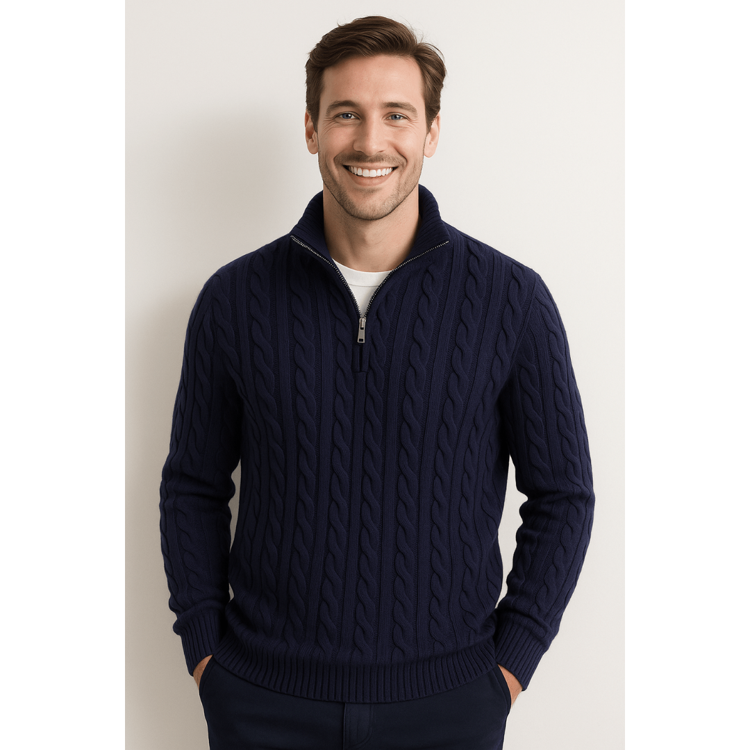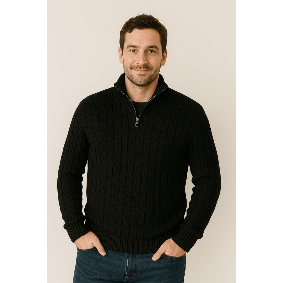 Anton | Heren Trui | Kabel-Gebreide Trui met Rits en Hoge Kraag