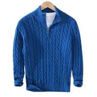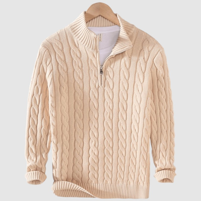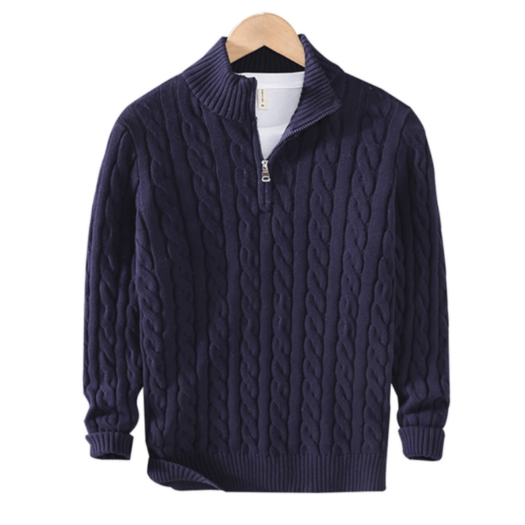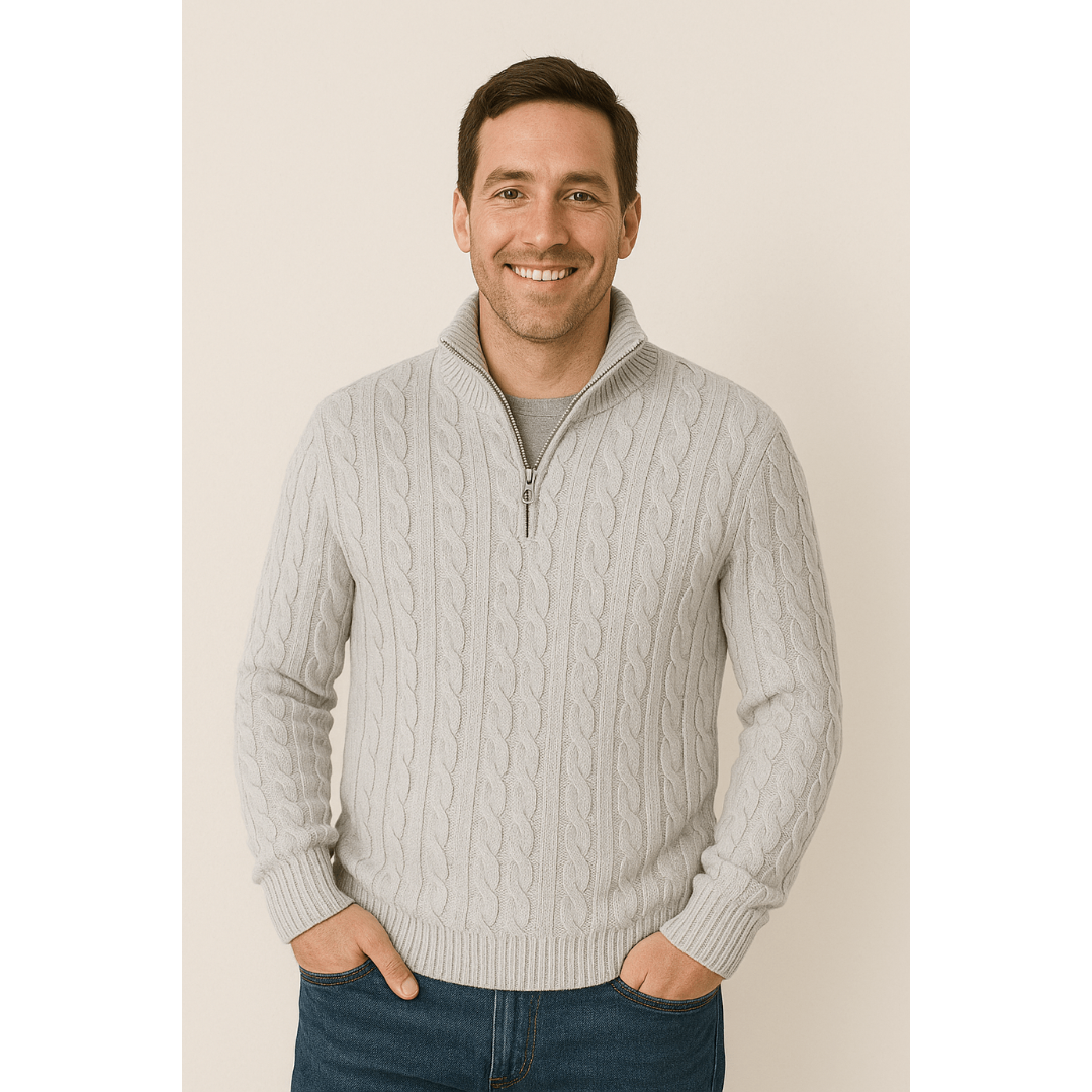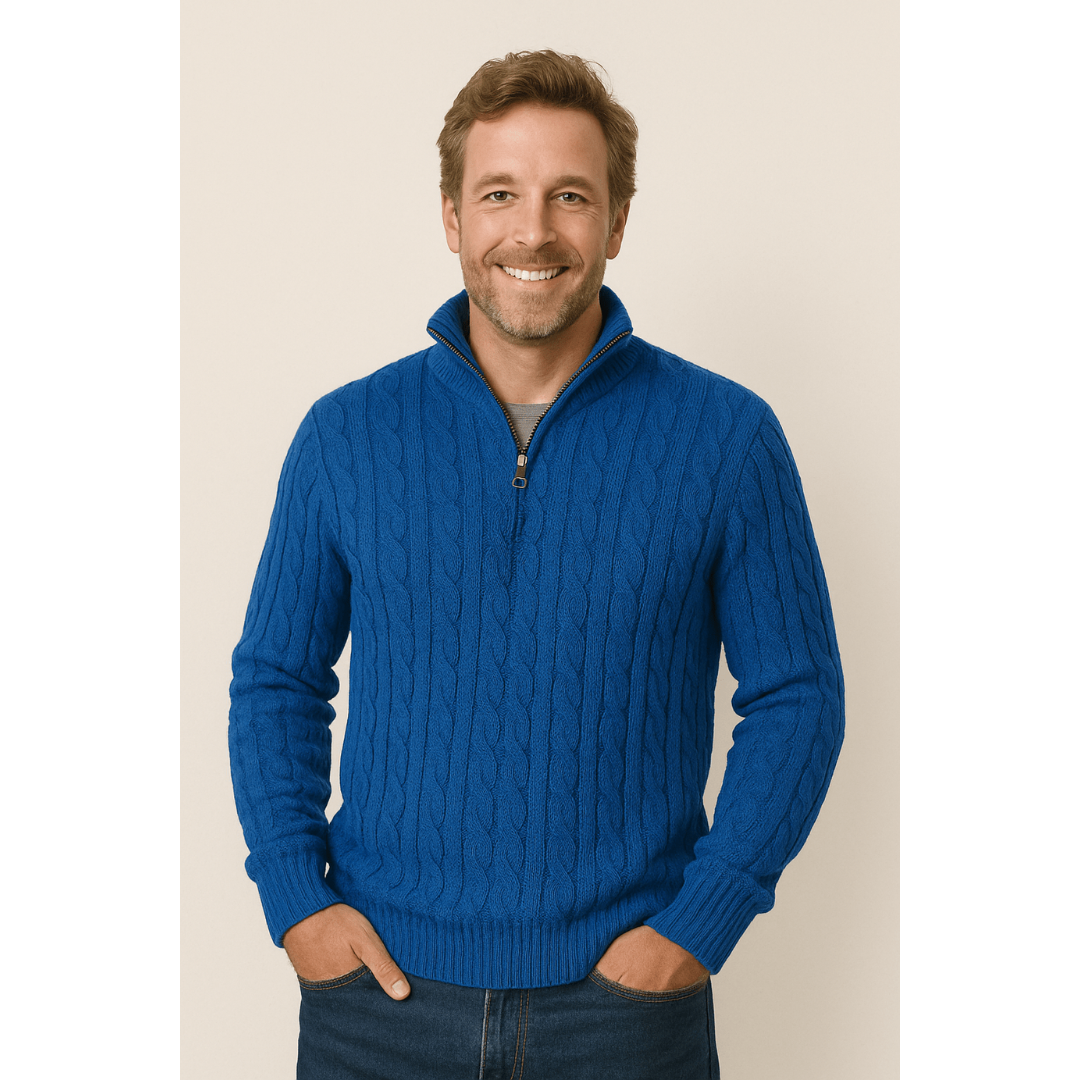 Anton | Heren Trui | Kabel-Gebreide Trui met Rits en Hoge Kraag