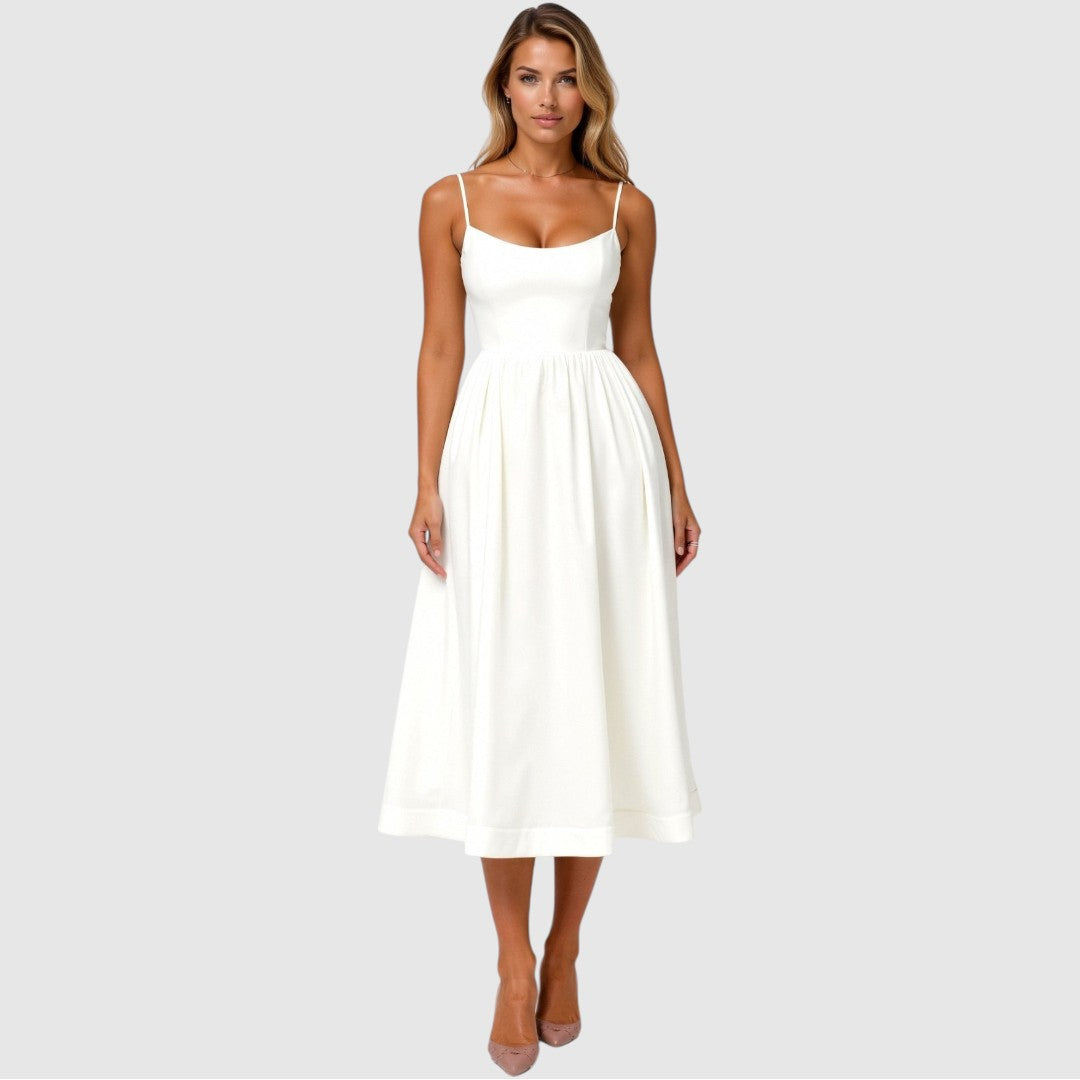 Beaudine | Dames Jurk met Spaghettibandjes | Midi met Open Rug