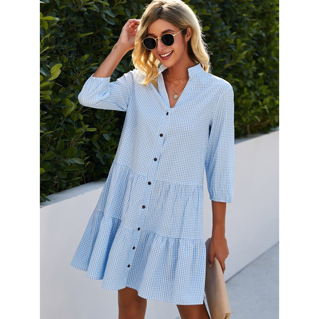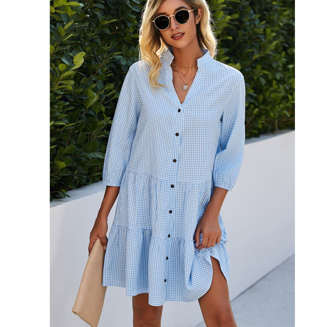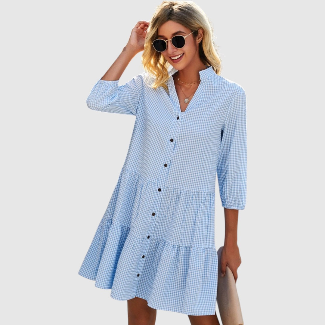 Charlotte | Dames Ruiten Jurk | Mini met Knoopsluiting en V-Hals