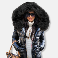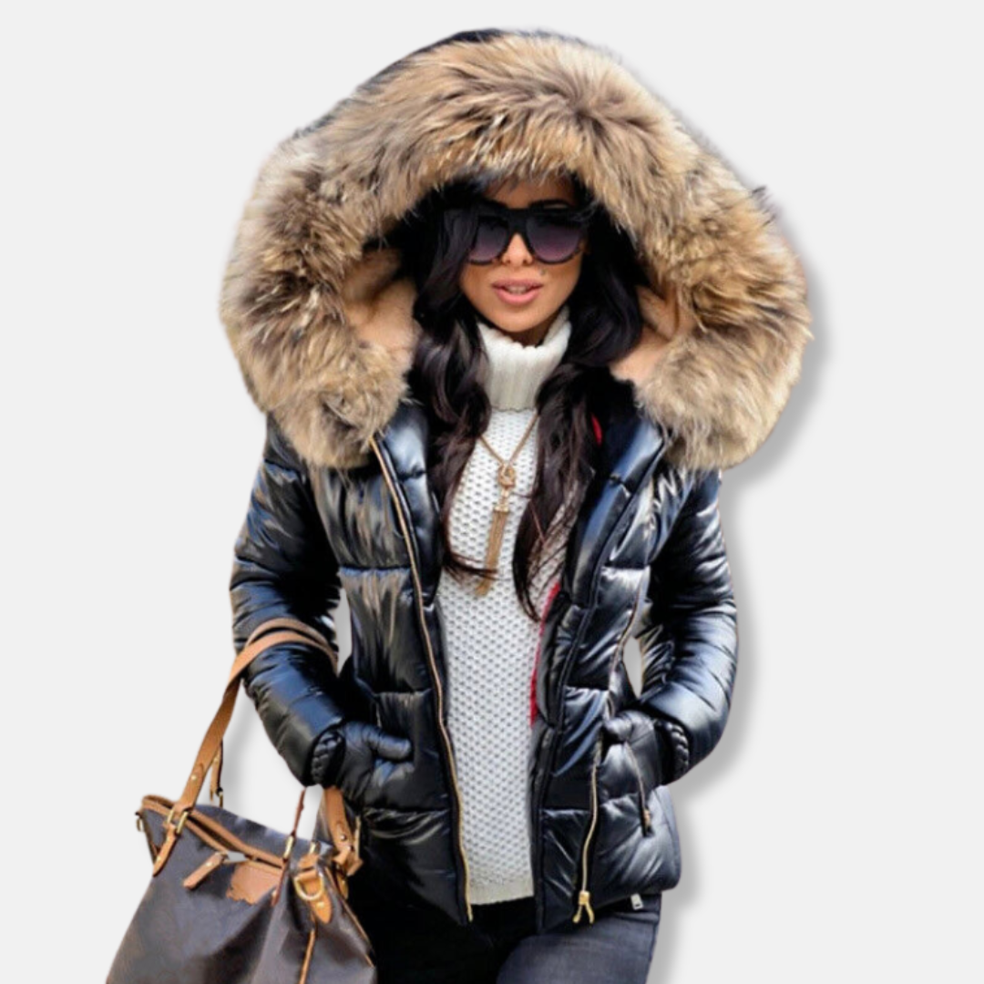 Demi | Dames Gewatteerde Winter Jas Met Bontkraag Capuchon | Pufferjas Met Trekkoord en Zakken