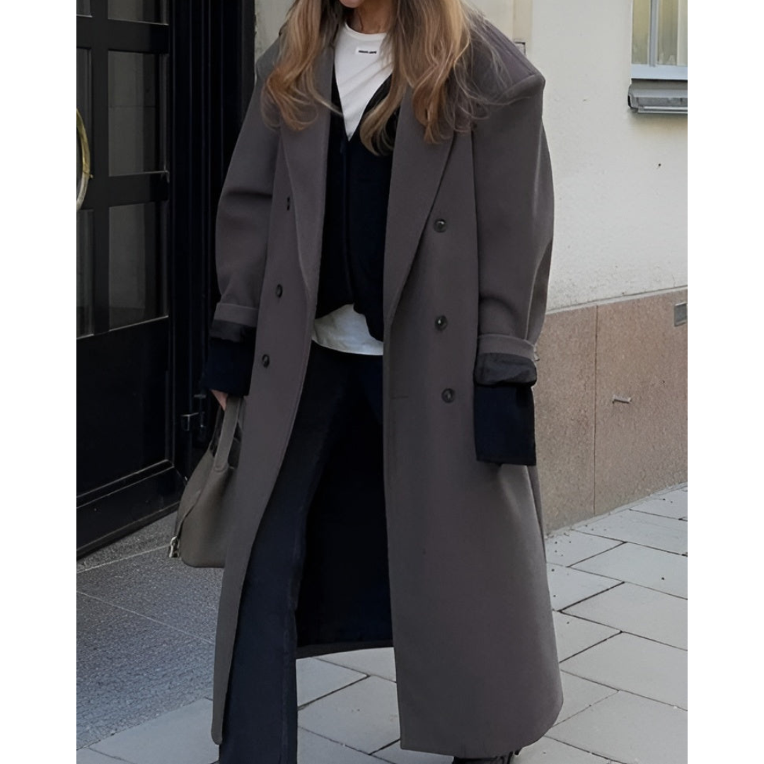 Evelien | Dames Winter Jas | Lange Pasvorm en Dubbelgeknoopt Met Schoudervulling