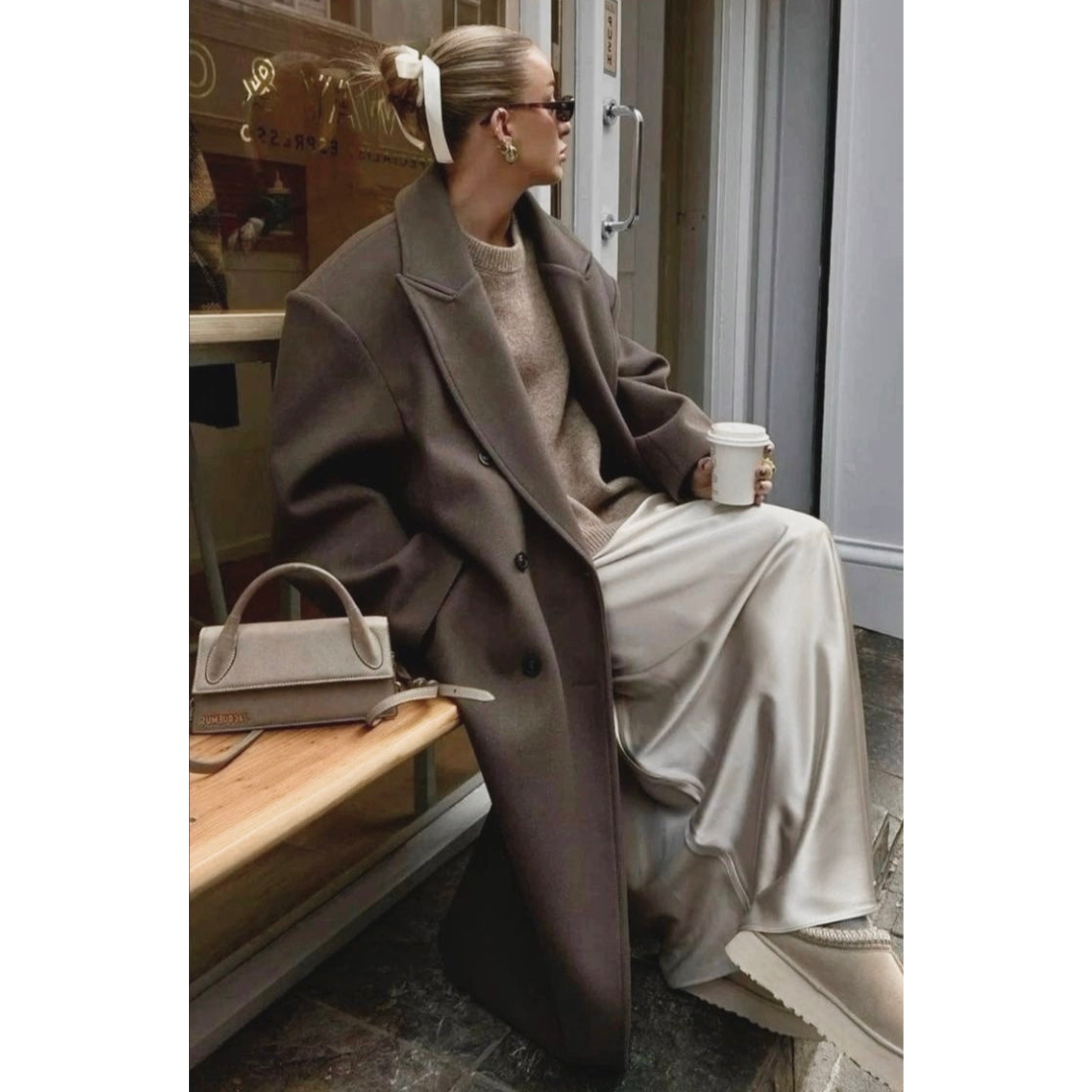Ontdek Evelien, de oversized damesjas met lange pasvorm en dubbele rij knopen die je look direct vernieuwt. De jas biedt een losse, comfortabele fit en een moderne herfstlook. Ideaal voor werk, stadswandelingen of een avondje uit.