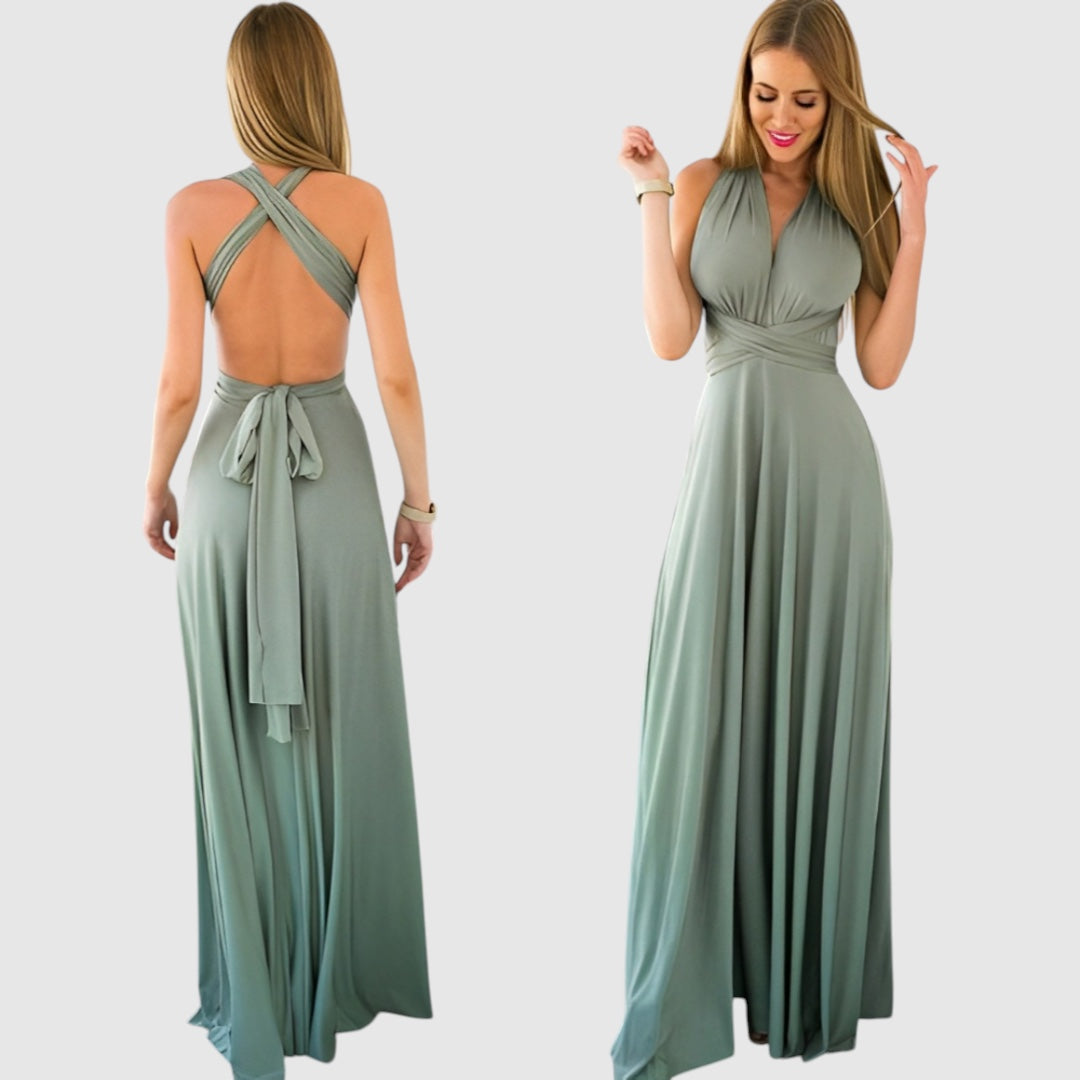 Evi | Dames Satijnen Jurk | Maxi met open rug