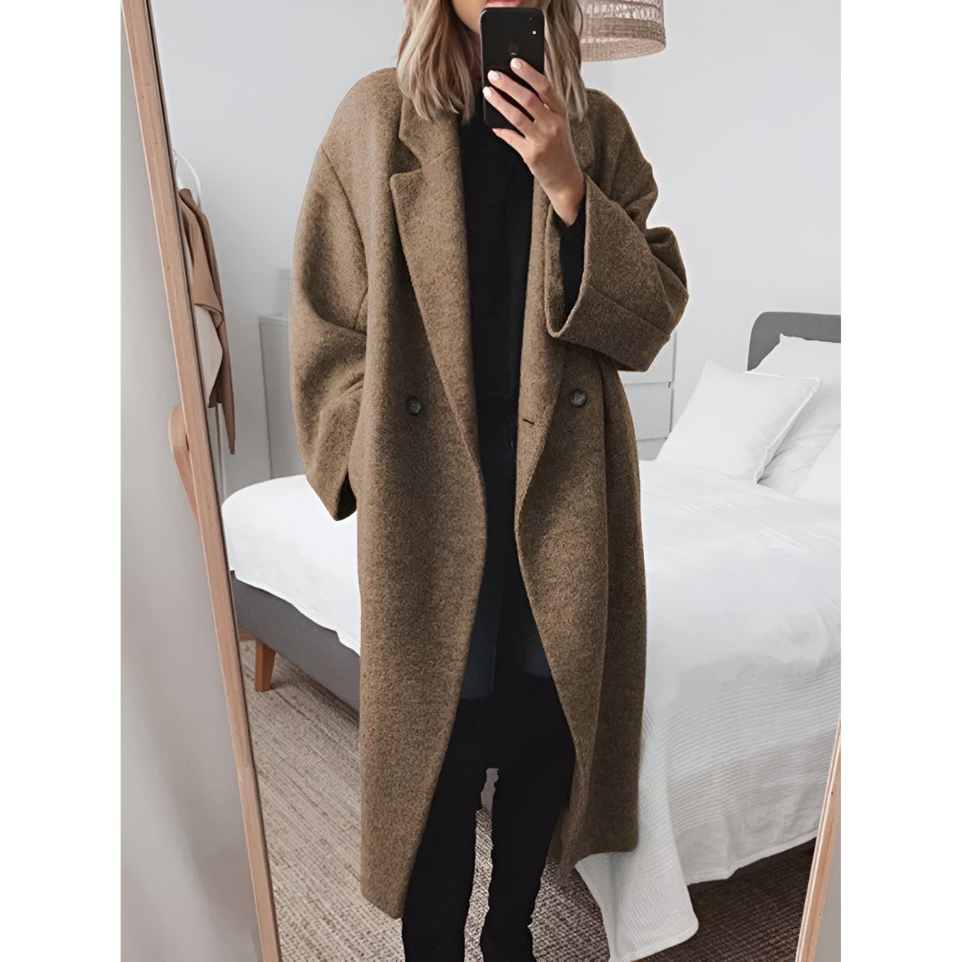 Gaby | Dames Lange Winter Jas met Dubbele Knoopsluiting en Reverskraag