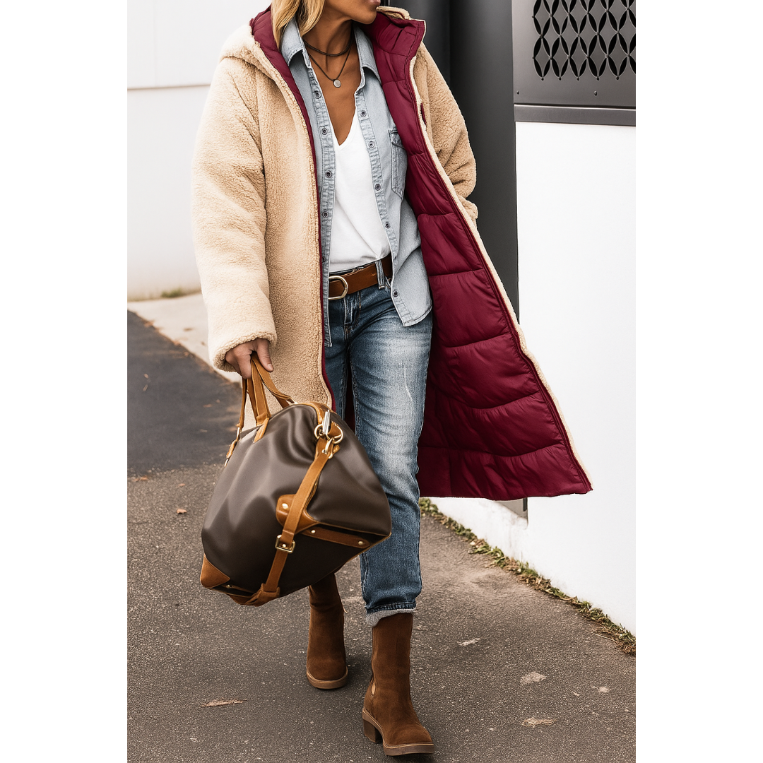 Ontdek Laura, de lange damesjas met capuchon en omkeerbaar design die elegantie en comfort combineert. Haar verfijnde uitstraling past bij elke gelegenheid. Isaura tilt jouw winterlook naar een hoger niveau met een perfecte mix van stijl en veelzijdigheid.