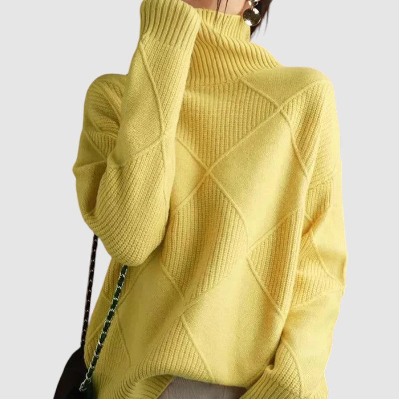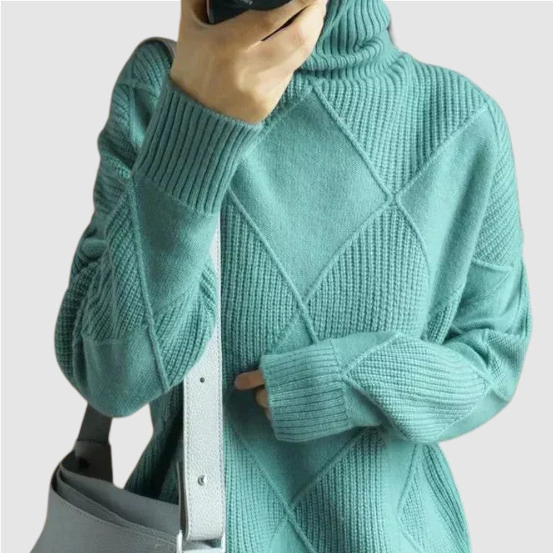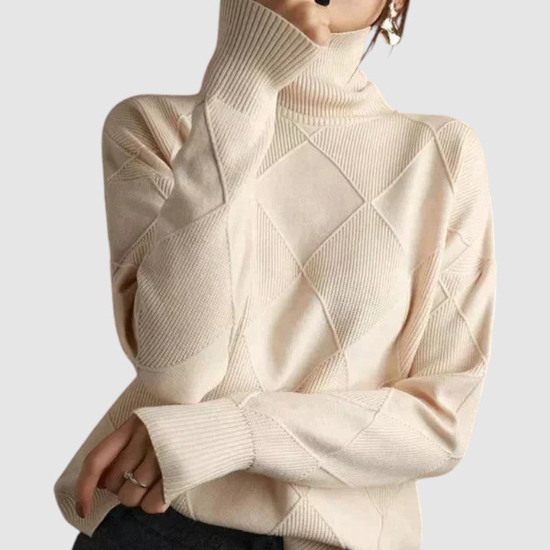 Janna | Dames Gebreide Coltrui Met Geruit Patroon en Lange Mouwen