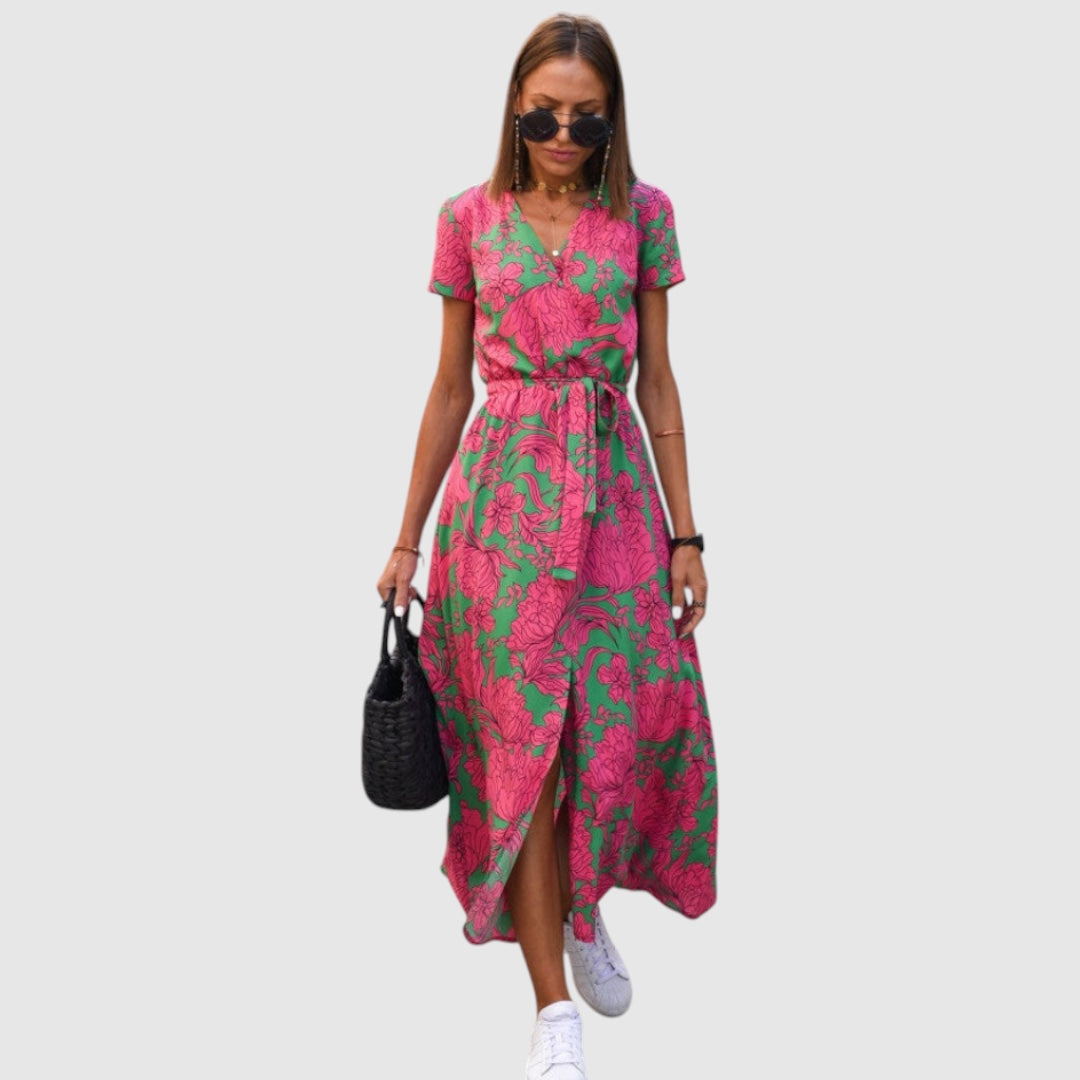 Jolijn | Dames Kleurrijke Jurk | Midi met V-hals