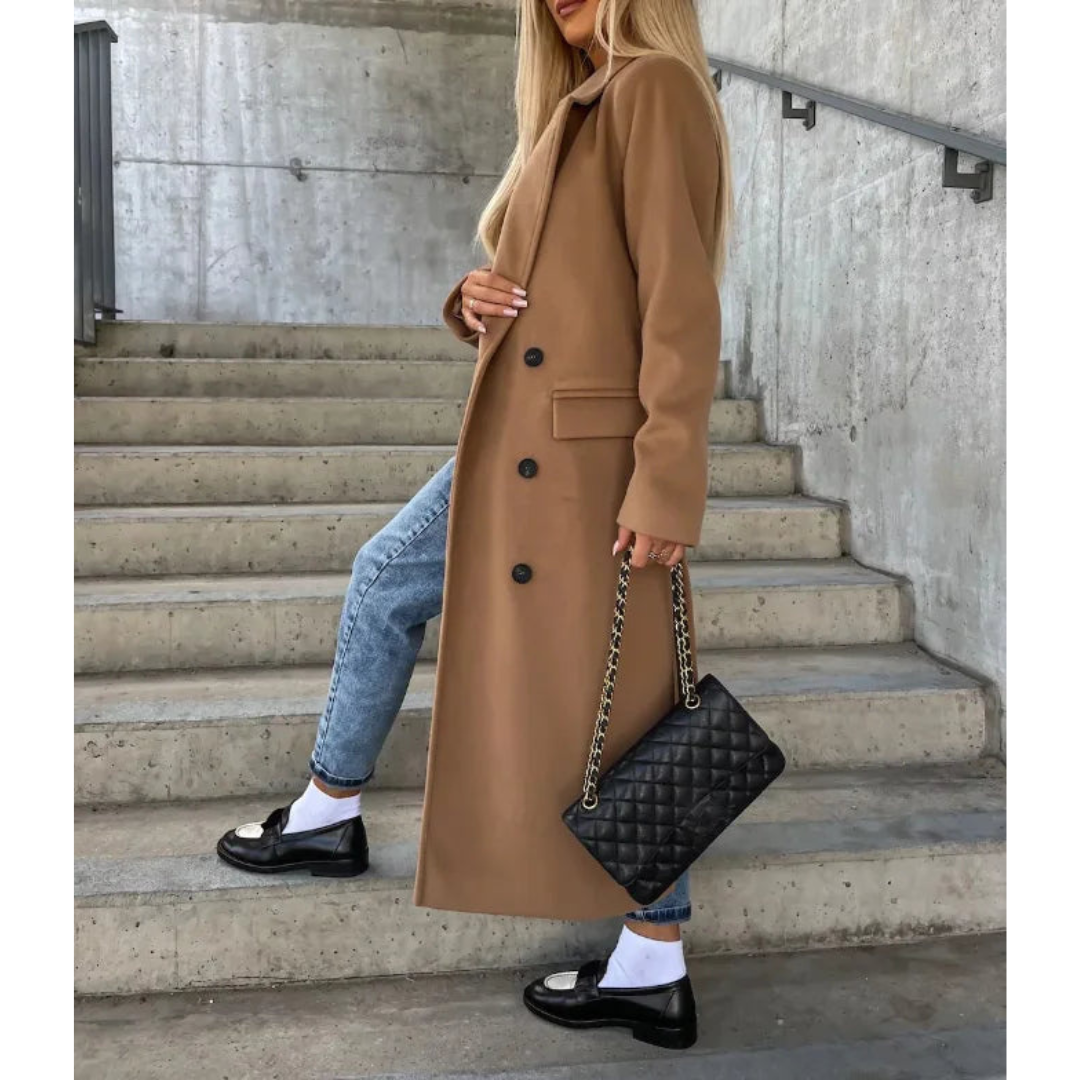 Ontdek Judith, de dames jas die stijl en bescherming samenbrengt. Met haar dubbelgeknoopte ontwerp en lange snit creëert ze een tijdloos silhouet. Of het nu voor werk, een avond uit of een stadswandeling is, Judith geeft elke outfit een krachtige uitstraling.