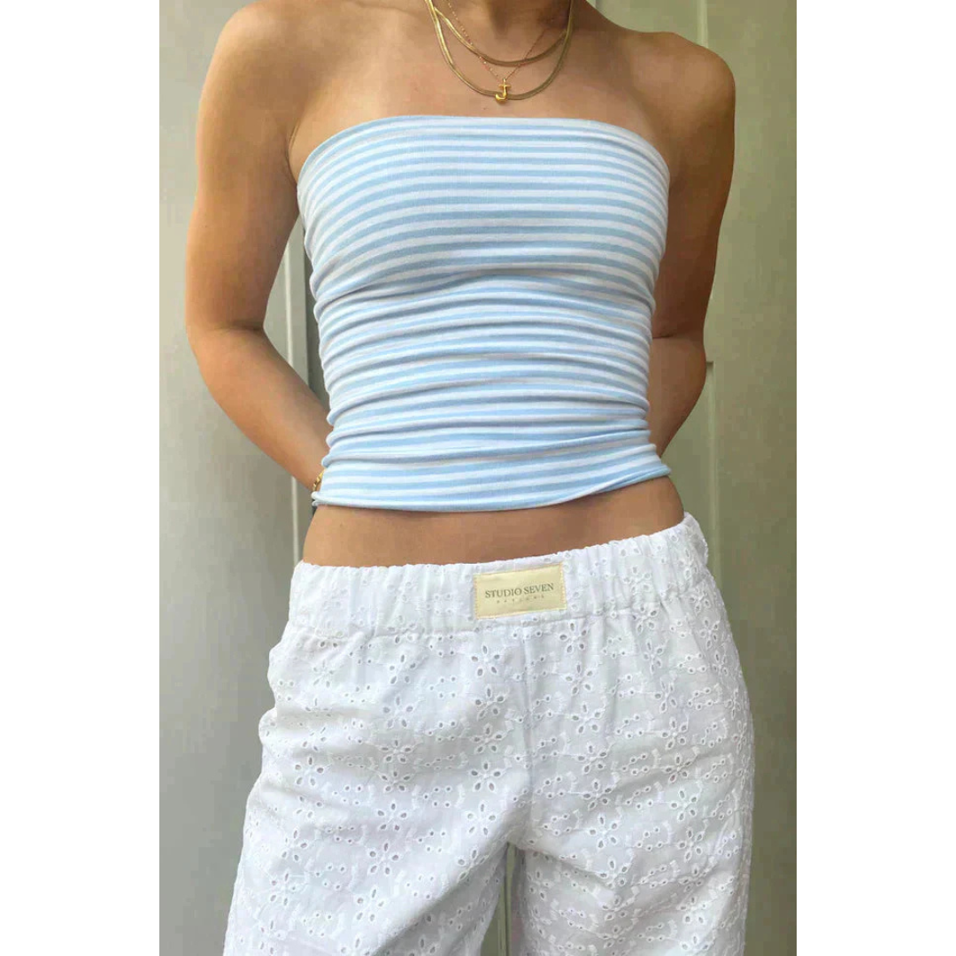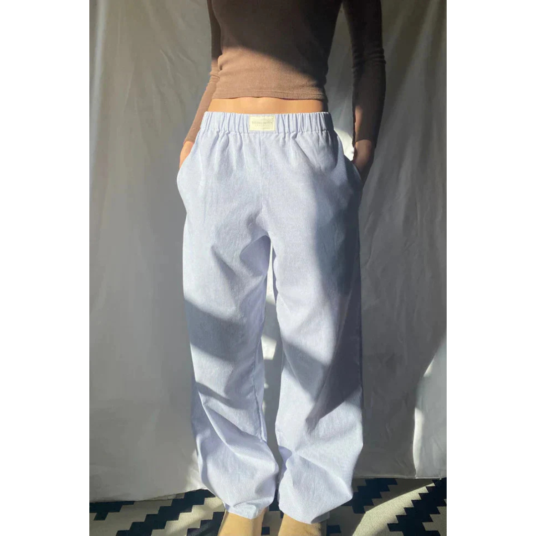 Lieve | Dames Gestreepte Broek Met Lage Taille En Rechte Wijde Pijpen