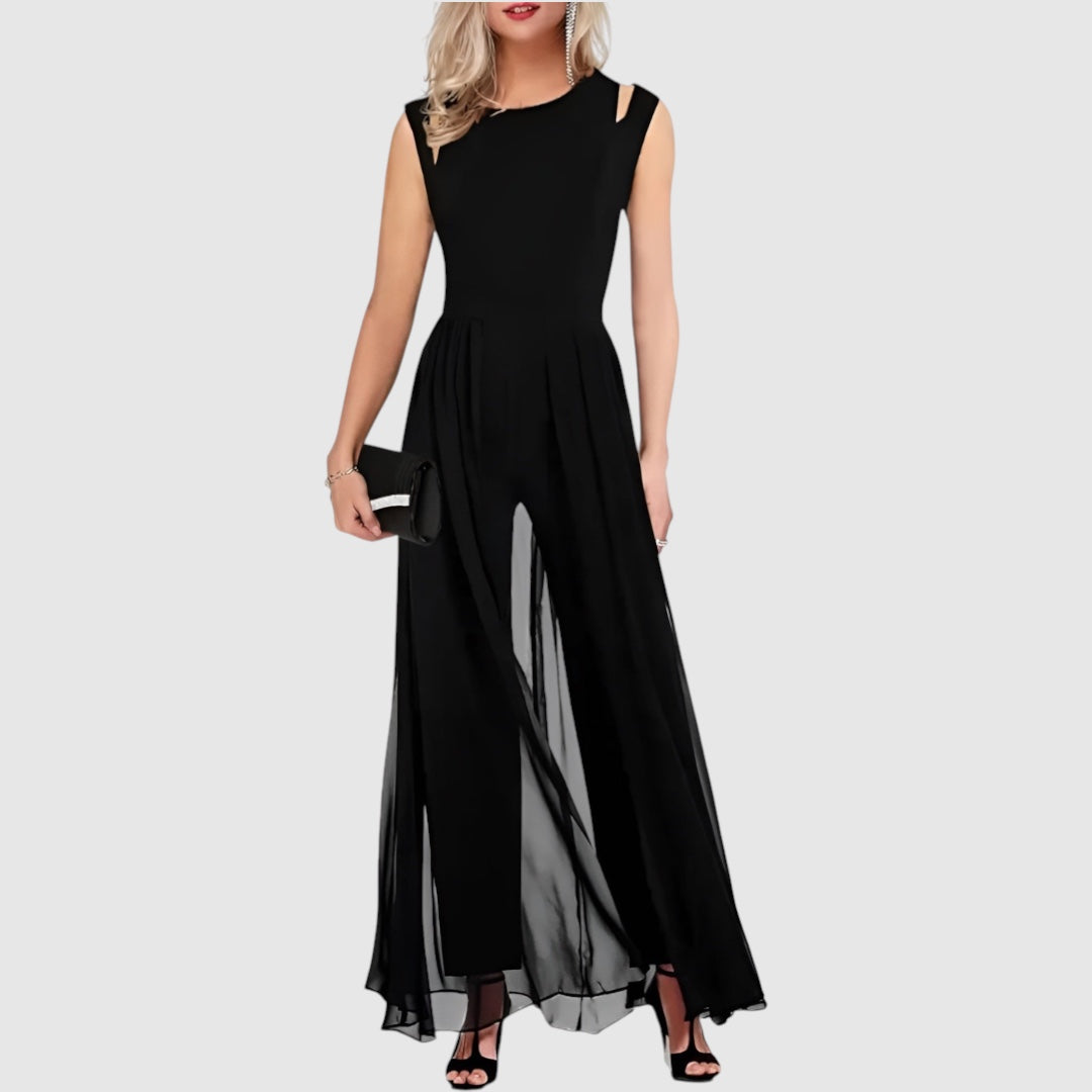Lilian | Dames Mouwloze Chiffon Jumpsuit met Wijde Pijpen