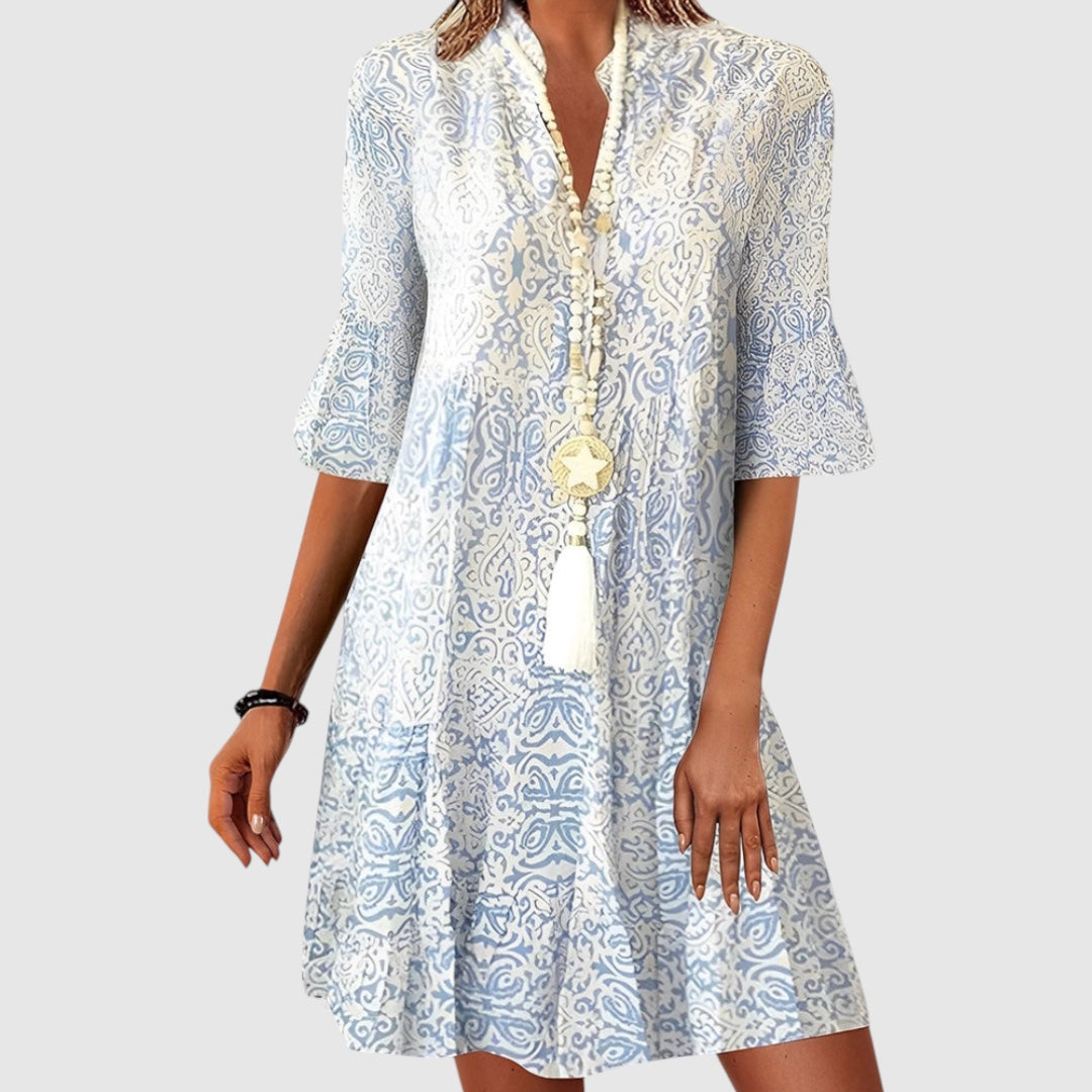 - Unieke print – De opvallende patronen geven de jurk een onderscheidende en modieuze uitstraling.