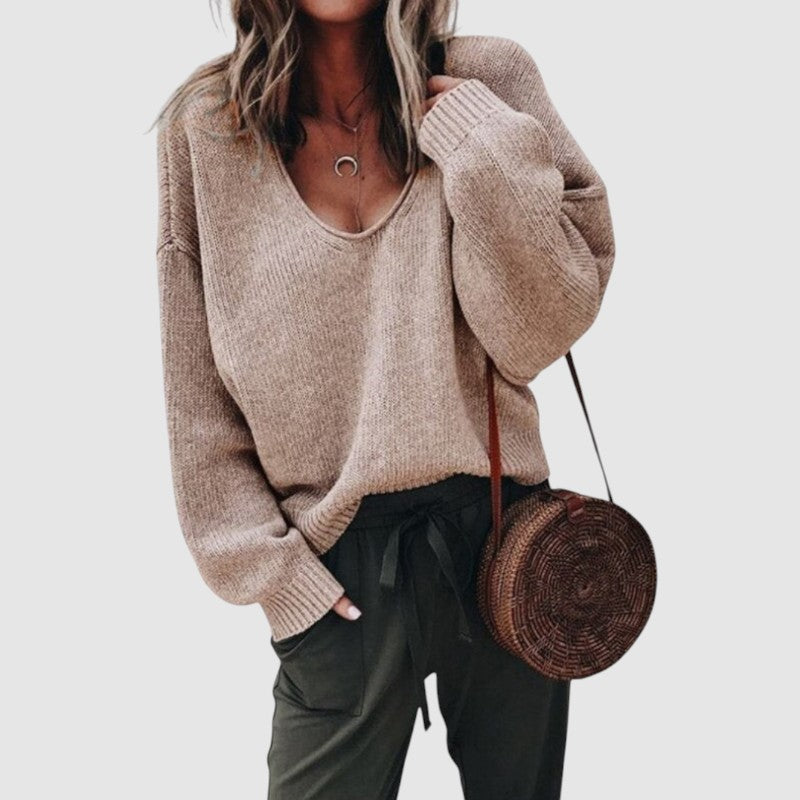 Lisa | Gebreide Wintertrui met V-Hals en Lange Mouwen
