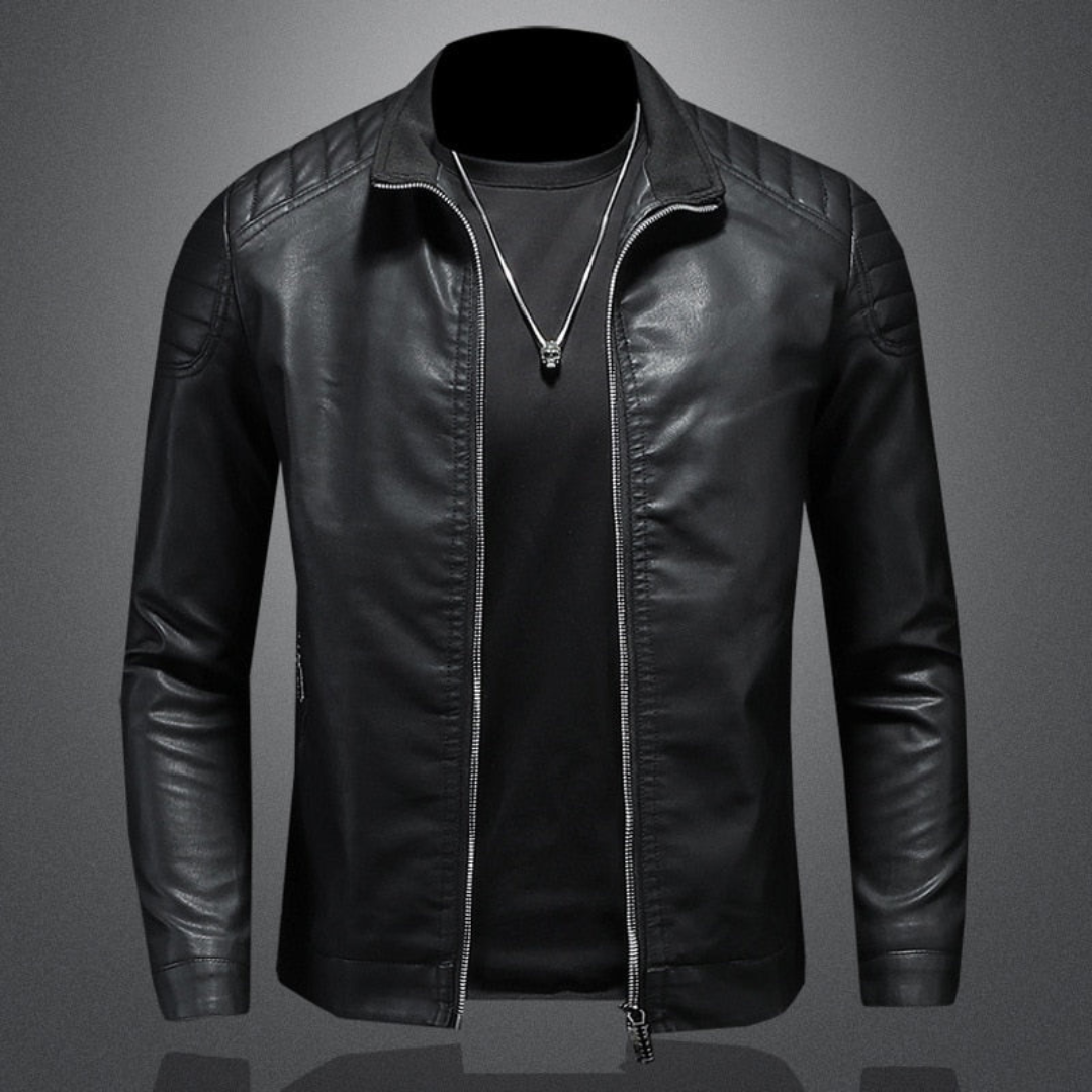 Lucas | Heren Bikerjack met Gewatteerde Schouders | Leren Jas