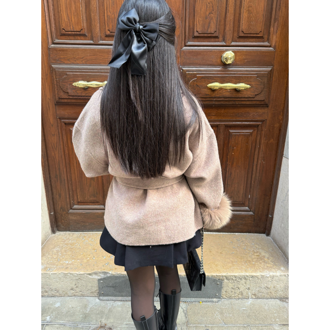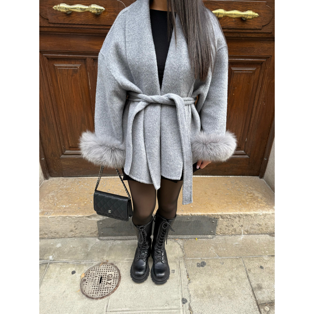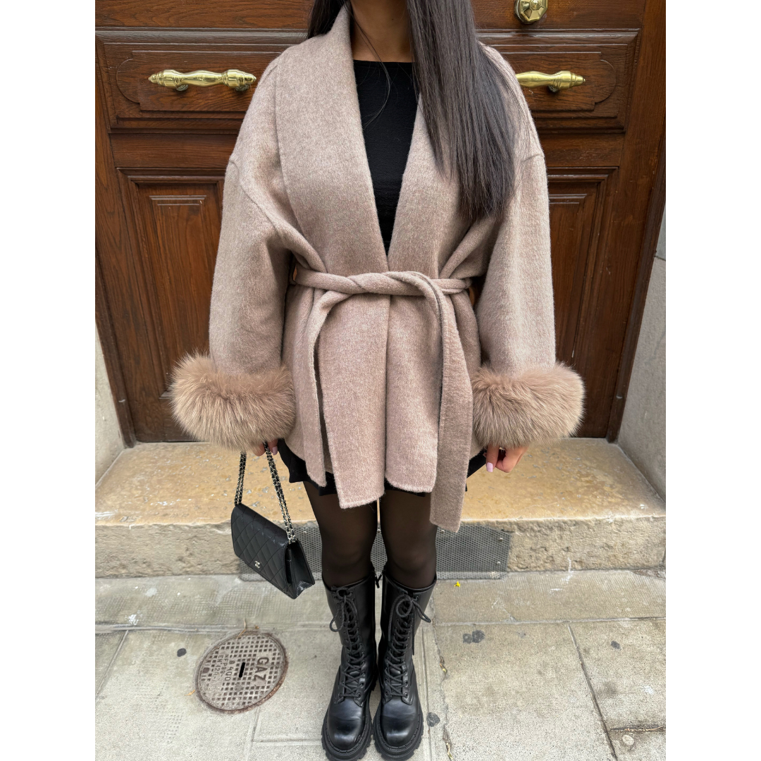 Lucy | Dames Korte Jas | Dubbelzijdige Wollen Jas met Bont en Afneembare Ceintuur