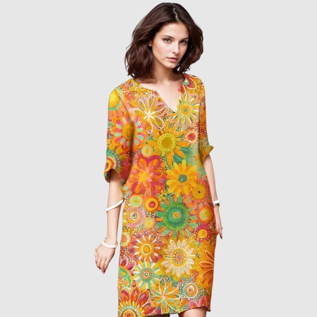 Maxime | Dames Jurk | Mini met V-hals en Bloemenprint