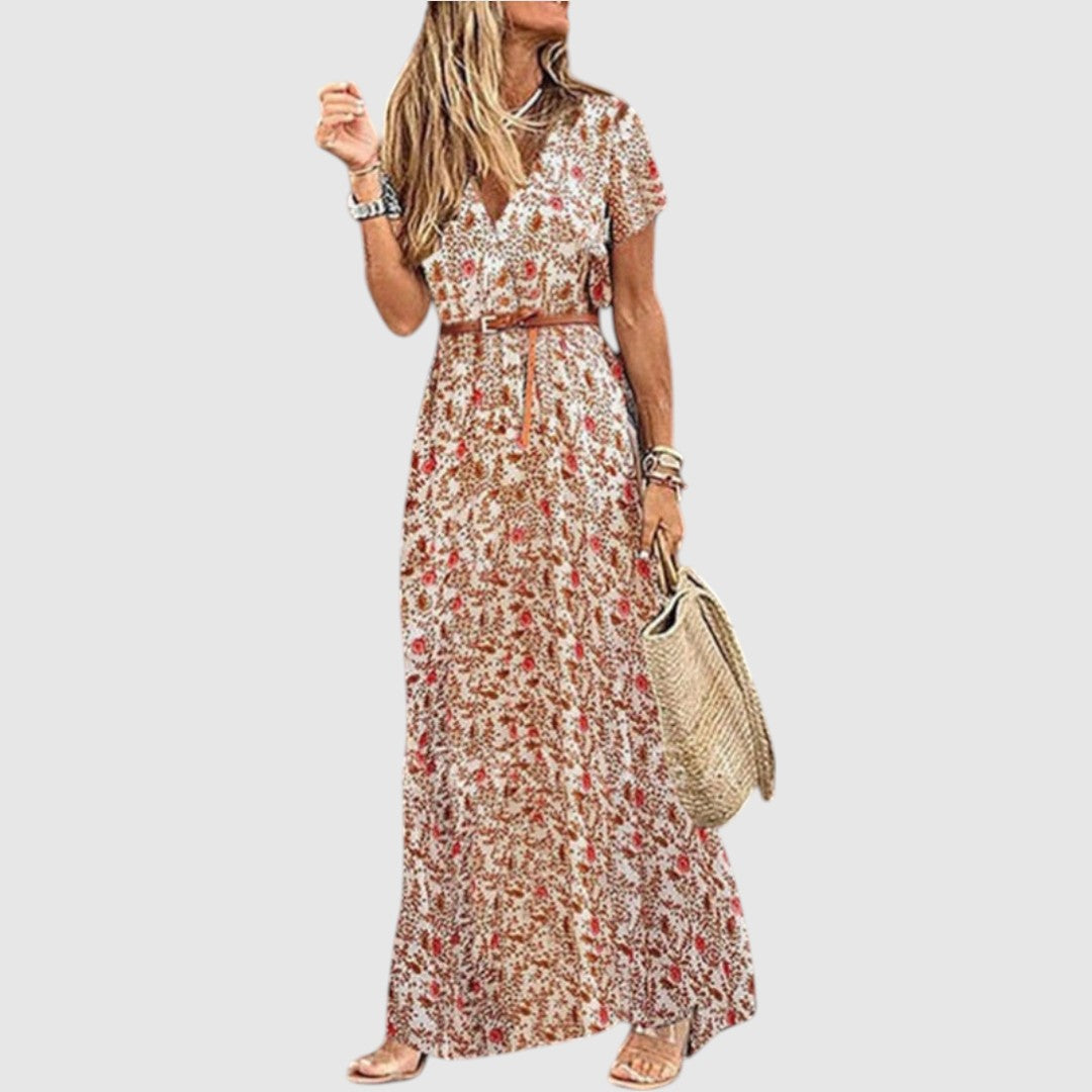 Merel | Dames Boho Jurk met V-Hals en Paisley Print | Maxi Jurk Zomer met Riem