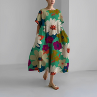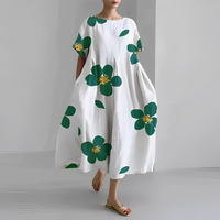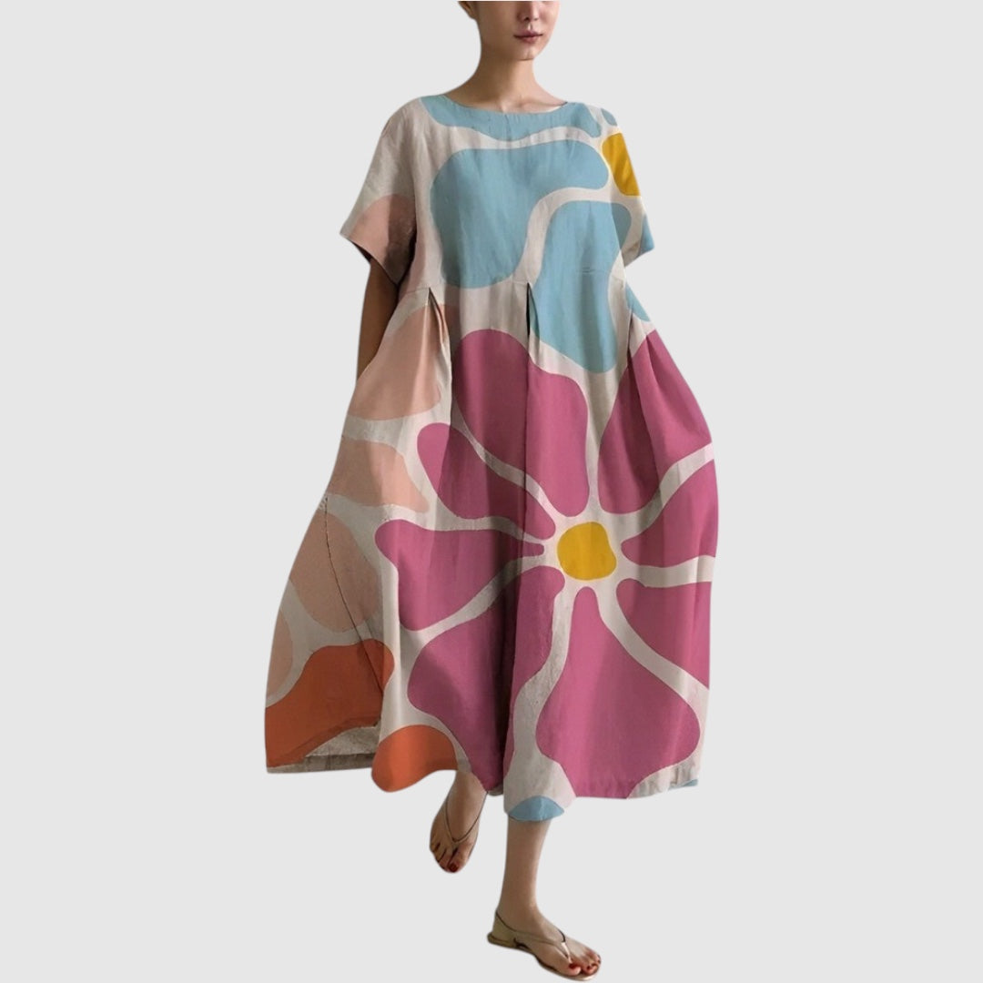 Rosa | Dames Linnen Zomer Jurk | Midi Jurk met Print