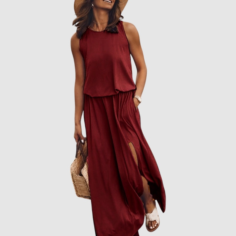 Seline | Dames Mouwloze Zomer Jurk met Split en Zakken