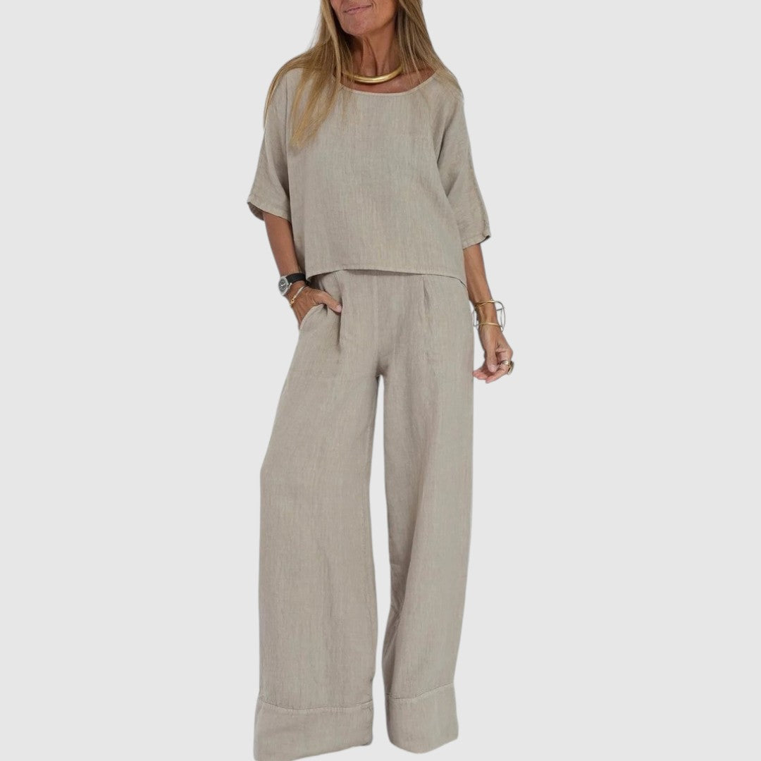 Sienna | Dames Casual Tweedelige Set met Losse Fit en Wijde Pijpen