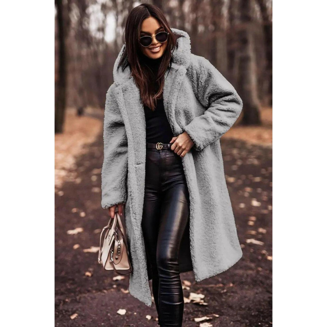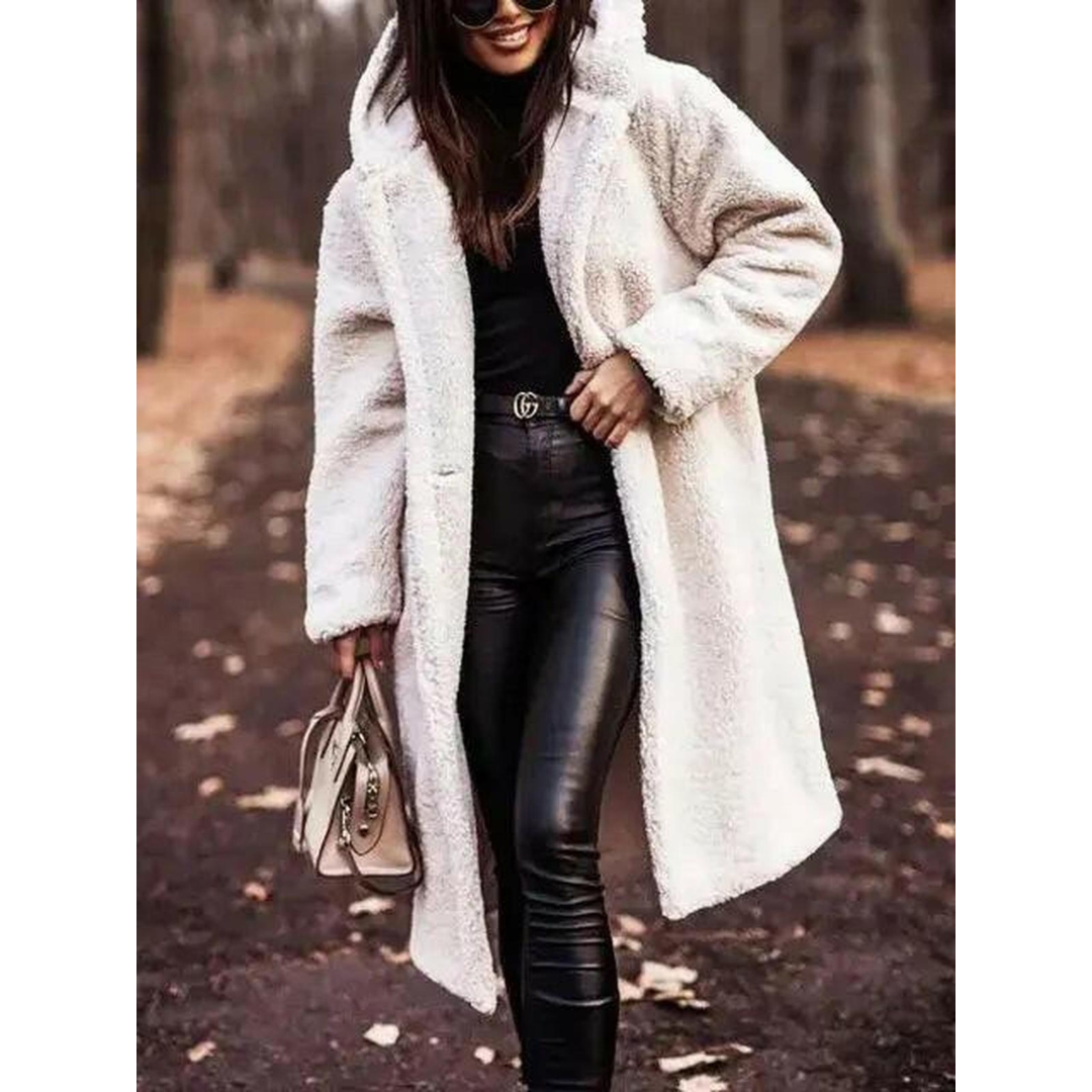 Summer | Dames Lange Teddy Jas Met Capuchon | Warme Winterjas Met Knoopsluiting