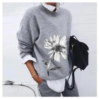 Tiffany | Dames Bloemen Trui | Warm Gebreid met Ronde Hals en Lange Mouwen